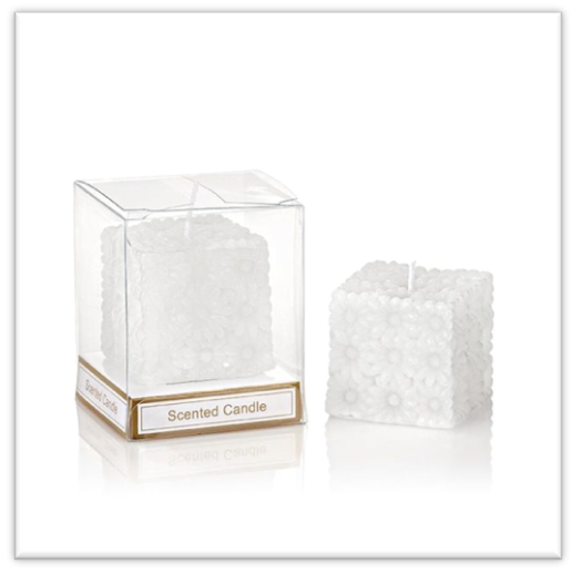 Μπομπονιέρα Αρωματικό Κερί Λευκό Με Μαργαρίτες Σε PVC Κουτάκι