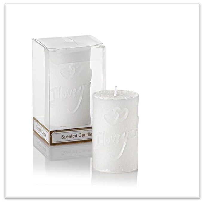 Μπομπονιέρα Αρωματικό Κερί Λευκό “I Love You” Σε PVC Κουτάκι
