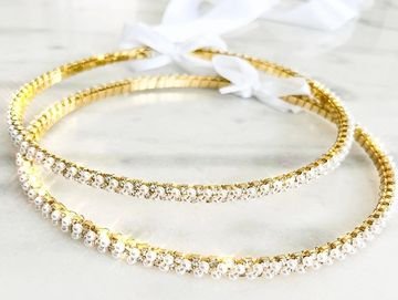Κομψά κρύσταλλα σε συνδυασμό με λευκά μαργαριτάρια 3 χιλιοστών, σε διπλή σειρά σε χρυσή βέργα.